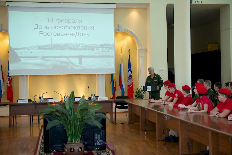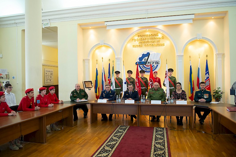 В РГУПС собрались единомышленники: преподаватели и студенты университета, обучающиеся в Военном учебном центре, участники Ростовского регионального патриотического общественного движения «Дороги славы – наша история»; представители Ростовского отделения Всероссийского детско-юношеского военно-патриотического общественного движения «Юнармия».