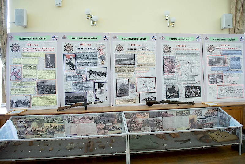 Военный учебный центр предоставил студентам и юнармейцам уникальную возможность познакомиться с выставкой архивных военных экспонатов (документы, фотографии, оружие, форма и мн. др), с инструментами времен Великой Отечественной войны, которыми восстанавливали железнодорожные пути. Экскурсию по выставке вели полковники Военного учебного центра А.В. Попов и Р.А. Сапоговский. Научно-технической библиотека развернула выставку книг «Шесть февральских дней 1943г.» (освобождению г. Ростова-на-Дону посвящается).