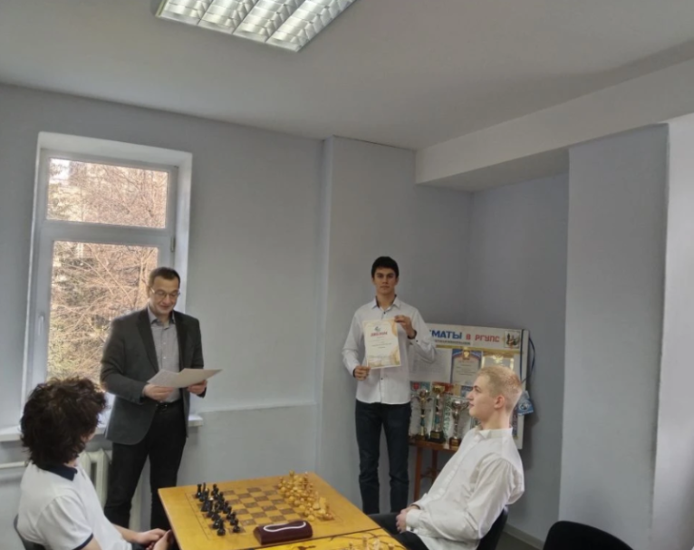 9 апреля состоялся шахматный турнир на первенство лицея РГУПС, в котором соревновались учащиеся 10-х классов. Организатором соревнования при поддержке проректора по молодежной политике и воспитательной деятельности Шепиловой Елены Григорьевны выступил заведующий кафедрой «Автоматика и телемеханика на ж/д транспорте» Швалов Дмитрий Викторович. Участники турнира продемонстрировали волю к победе и решительность действий. Ребята серьезно отнеслись к соревнованию, их охватил азарт, однако побеждает сильнейший! Победа досталась лицеисту 10Б класса Грачеву Андрею, второе место у Ракова Антона, лицеиста 10А класса. На третьем и четвертом ˗ Клочков Серафим и Мухаммад Самир из 10Б класса.