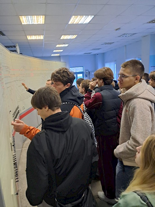 Программа посещения была очень насыщенной и состояла из профориентационных экскурсий по структурным подразделениям: диспетчерский центр управления перевозками, вокзальный комплекс станции Ростов-Главный, моторвагонное депо Ростов, пост электрической централизации. С работой объектов лицеистов знакомили заместитель начальника ДЦУП Е.Р. Дельмухаметов, заместитель начальника железнодорожного вокзала А.М. Поздняков, заместитель начальника депо по кадрам и социальным вопросам А.Д. Частухин, начальник станции Е.В. Щедрин.