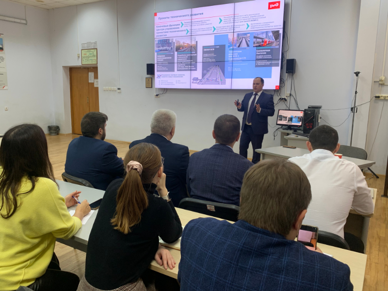 Антон Сергеевич в ходе развернутой лекции ознакомил с особенностями комплексных проектов технологического развития ОАО «РЖД». Подробно рассказал о проекте «Цифровая железнодорожная станция Челябинск-Главный», являющимся комплексом программных и технических средств и устройств, обеспечивающих расчет и выполнение технологических операций на станциях и путях необщего пользования с минимальным участием человека. О взаимоувязке Программных и Инфраструктурных модулей проекта ЦЖС и интеграционном взаимодействии модулей с существующими Автоматизированными системами ОАО «РЖД». Также озвучил информацию о проекте развития высокоскоростного движения и современных технологиях, применяемых в конструкции нового электропоезда для высокоскоростной магистрали Москва-Санкт Петербург. Рассказал о внедрении беспилотного движения на МЦК в г. Москва и проекте по разработке конструкции железнодорожного пути, позволяющим существенно повысить пропускную способность.