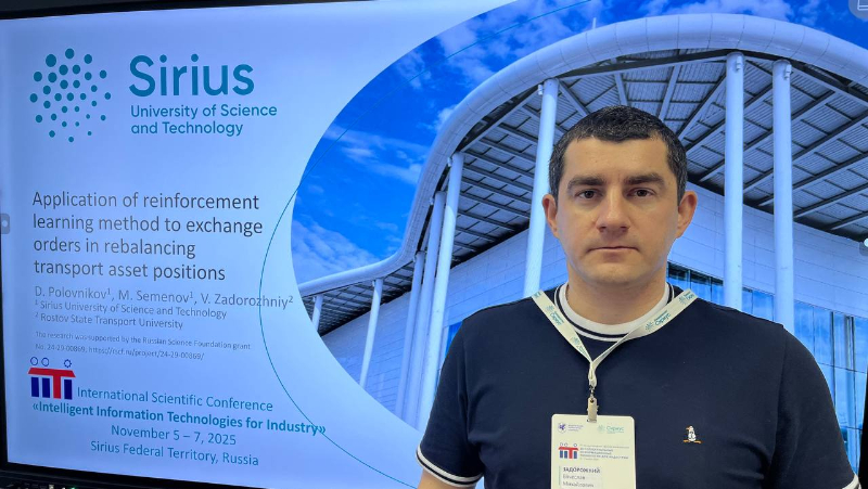 В секции «Финансовая математика и инженерия» принял участие представитель факультета «Управление процессами перевозок» Вячеслав Задорожний с докладом «Application of reinforcement learning method to exchange orders in rebalancing transport asset positions».