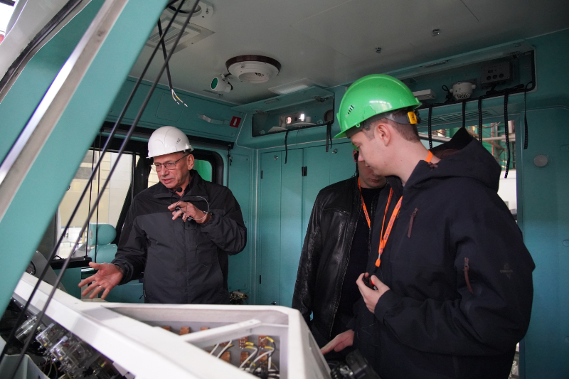 В.Л. Задорожный, главный специалист по электровозам переменного тока Технической дирекции НЭВЗа представил различные этапы процесса создания электровоза. Особый акцент был сделан на работе участка монтажа и сборки модульной кабины машиниста. Студенты «изнутри» смогли увидеть конструктив кабины – пульт машиниста с органами управления оборудованием электровоза, контроллером машиниста, блоками индикации (мониторами) системы управления и приборами безопасности.