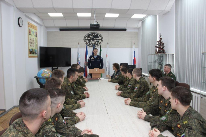 В рамках участия вуза в Общероссийской акции «Время Героев» в университете прошла встреча студентов с Героем России, участником специальной военной операции, гвардии лейтенантом А.А. Афанасьевым.
