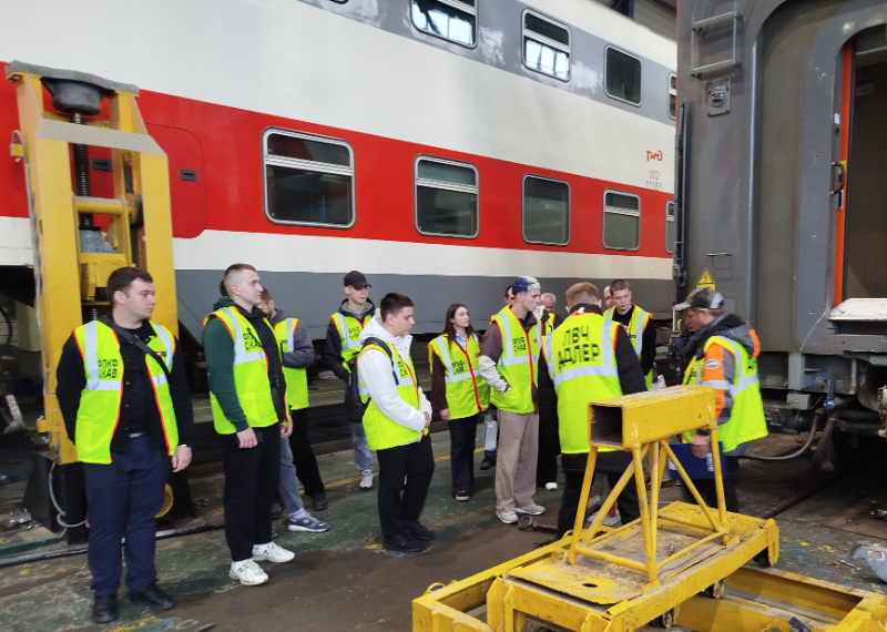 На вагонном участке «Адлер» Северо-Кавказского филиала АО «ФПК» ведущие специалисты ознакомили студентов с технологическим процессом обслуживания различных типов вагонов, оборудованных дисковыми тормозами и формированием пассажирских поездов.
