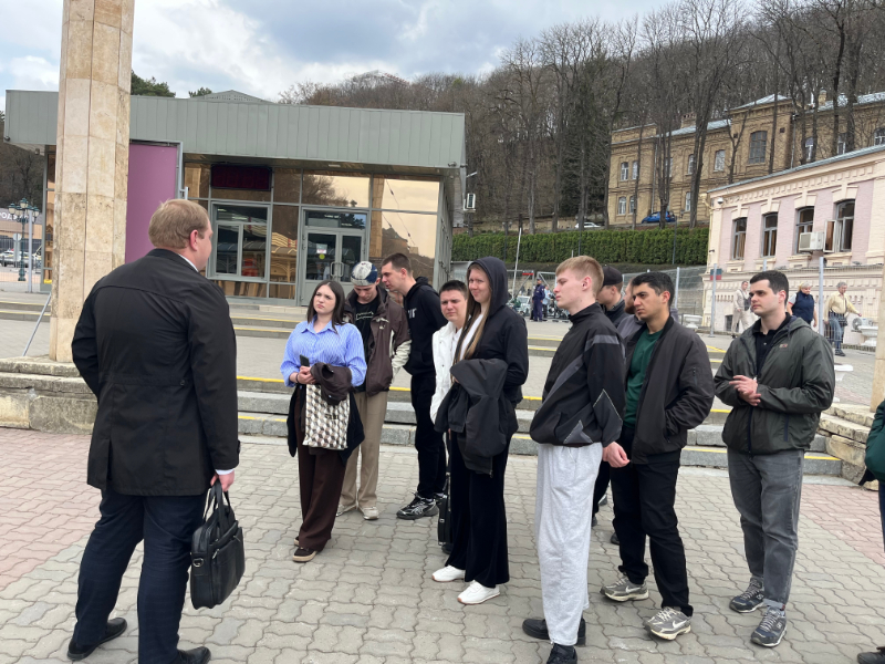 Затем группа совершила трансфер в г. Кисловодск, где первым объектом, который посетила группа стал остановочный пункт «Минутка» - объект культурного наследия, на котором представитель дирекции пассажирских обустройств познакомил с историей и планах строительства нового вокзального комплекса. Затем группа переместилась на Кисловодский вагонный участок, где студентам был проведен мастер-класс по технологическому процессу мойки пассажирских вагонов, особенностью которого является закрытый цикл, позволяющий не наносить вред экологии особо охраняемой природной зоны Кавказских Минеральных Вод.