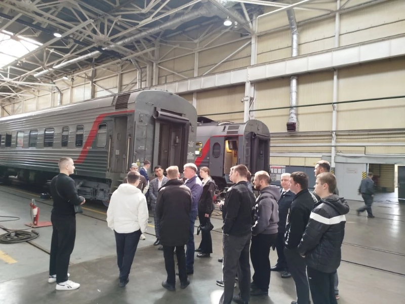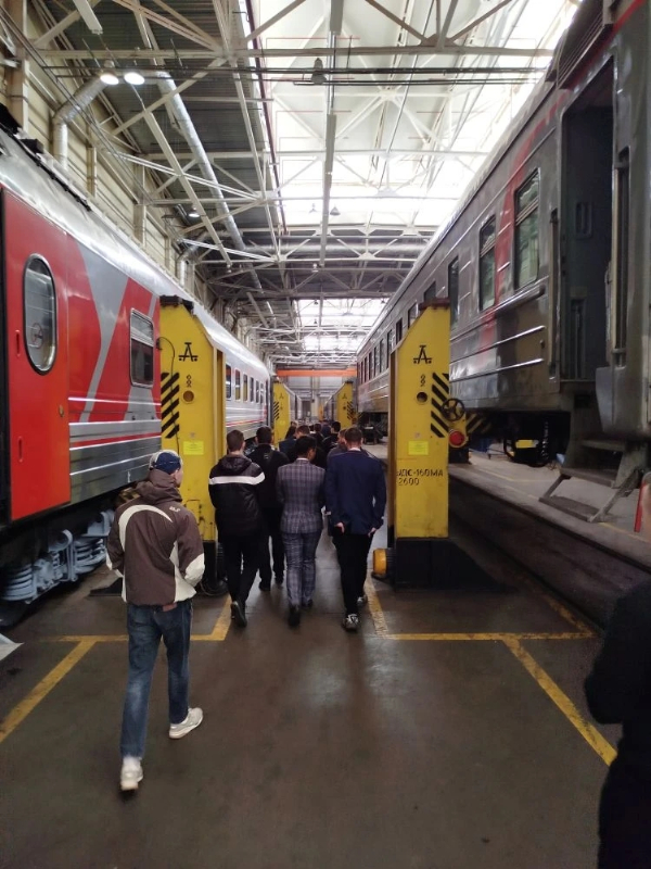 Первый день стажировки начался с ознакомления студентов с технологиями обслуживания пассажиров на вокзальном комплексе в г. Минеральные Воды. После этого студенты погрузились в работу уникального Пассажирского вагонного депо Минеральные Воды АО «ФПК», где состоялась встреча в формате круглого стола с начальником депо Куценко В.А. и руководящим составом, который провел знакомство с современными технологиями технического обслуживания и ремонта пассажирских вагонов. Студентов ознакомили с новыми ремонтными цехами, которые оснащены современным высокотехнологичным оборудованием, сделавших его единственным в России депо по ремонту пассажирских вагонов различных серий, а также двухэтажных вагонов и вагонов габарита РИЦ. Затем студенты переместились в локомотивное депо Минеральные Воды – одно из старейших депо на СКЖД. Студенты смогли ознакомиться с технологиями эксплуатации и ремонта пассажирских электровозов переменного тока серии ЭП1М и ЭП1П для работы на горном и холмистом профиле пути.