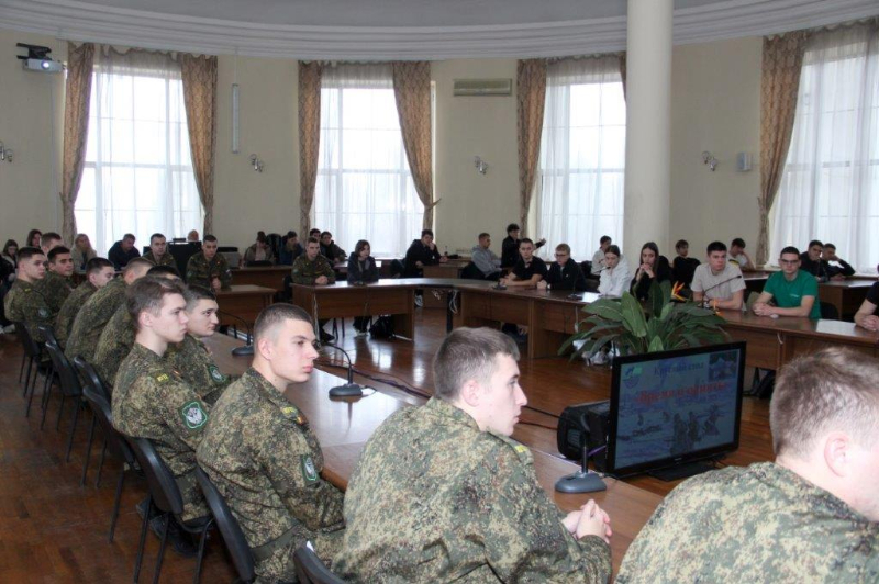 Участникам мероприятия рассказали об освобождении нашего города от немецко-фашистских захватчиков, подвиге воинов-освободителей, зверствах фашистов во время оккупации, жизни мирных людей в оккупированном городе, о формировании Ростовского Стрелкового полка Народного ополчения, бойцами которого стали многие студенты РИИЖТ, о его боевом пути и о судьбе воинов-ополченцев. Собравшимся были продемонстрированы кадры документальной хроники 1941 г. и сохранившиеся личные фотографии участников ВОВ.