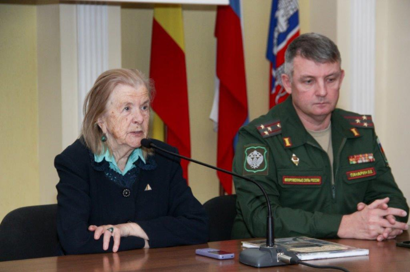 Участником круглого стола стала Е.П. Смирнова - член Союза журналистов России, заслуженный работник культуры РФ, член общественной палаты г. Ростова-на-Дону. Она подчеркнула, что сейчас многие пытаются переписать итоги Великой Отечественной войны и стереть из памяти молодого поколения воспоминания о подвиге их прадедов, отдавших жизнь за Родину. Тем ценнее сохранившиеся воспоминания свидетелей страшных злодеяний фашистского режима. Елена Петровна поделилась со студентами историей создании книги своего супруга В.В. Смирнова «Ростов под тенью свастики». В этой книге впервые в отечественной литературе было представлено документальное описание жизни ростовчан во время фашистской оккупации.