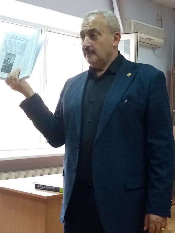 Михаил Борисович рассказ студентам о своей работе в органах внутренних дел, об интересных случаях работы оперуполномоченного и о своих коллегах по работе, защищавших правопорядок в нашем городе и стране. Большую часть рассказа он посвятил теме Великой Отечественной войны 1941-1945 г. и подвигу малоизвестных героев, которым посвящены две книги писателя.