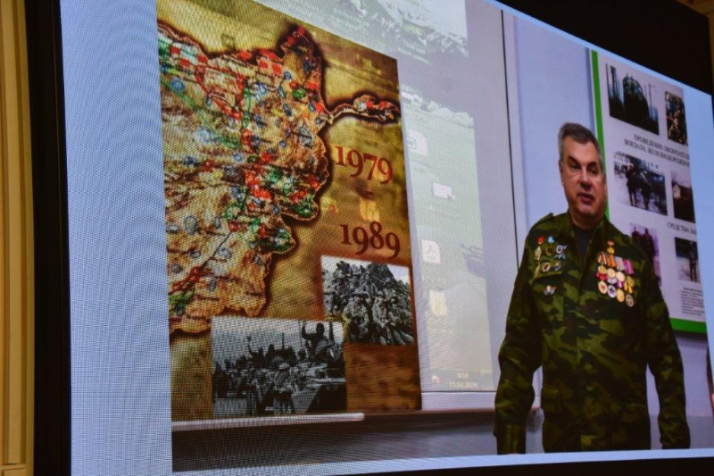 Собравшимся была представлена презентация и показано видеоинтервью с выпускником Владикавказского техникума железнодорожного транспорта (филиала РГУПС), Героем России В.П. Ковтуном, который в 1985-1987 г. воевал в Афганистане в составе бригады спецназа ГРУ Генштаба. Высокое звание Героя РФ он получил за героизм, мужество и отвагу, проявленные при выполнении специальных заданий в условиях, сопряженных с риском для жизни на территории Республики Афганистан.