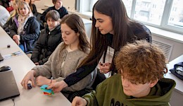 В завершение встречи школьники приняли участие в деловой интерактивной игре «Экспресс-карьера: путь на вершину», подготовленную сотрудниками кафедры «Экономика и финансы» совместно со студентами факультета «Экономика, управление и право». Гости факультета активно включились в выполнение конкурсных заданий, проявили соревновательный дух и азарт, продемонстрировали хороший уровень финансово-экономической грамотности. По окончании игры гости получили памятные подарки и сувениры с символикой университета.