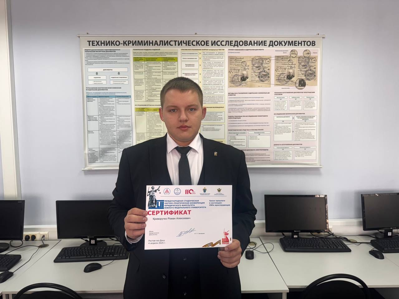 4 апреля 2025 года студент гр. ПГБ-3-29 Криворучко Роман принял участие в Международной студенческой конференции юридического факультета Южного Федерального университета