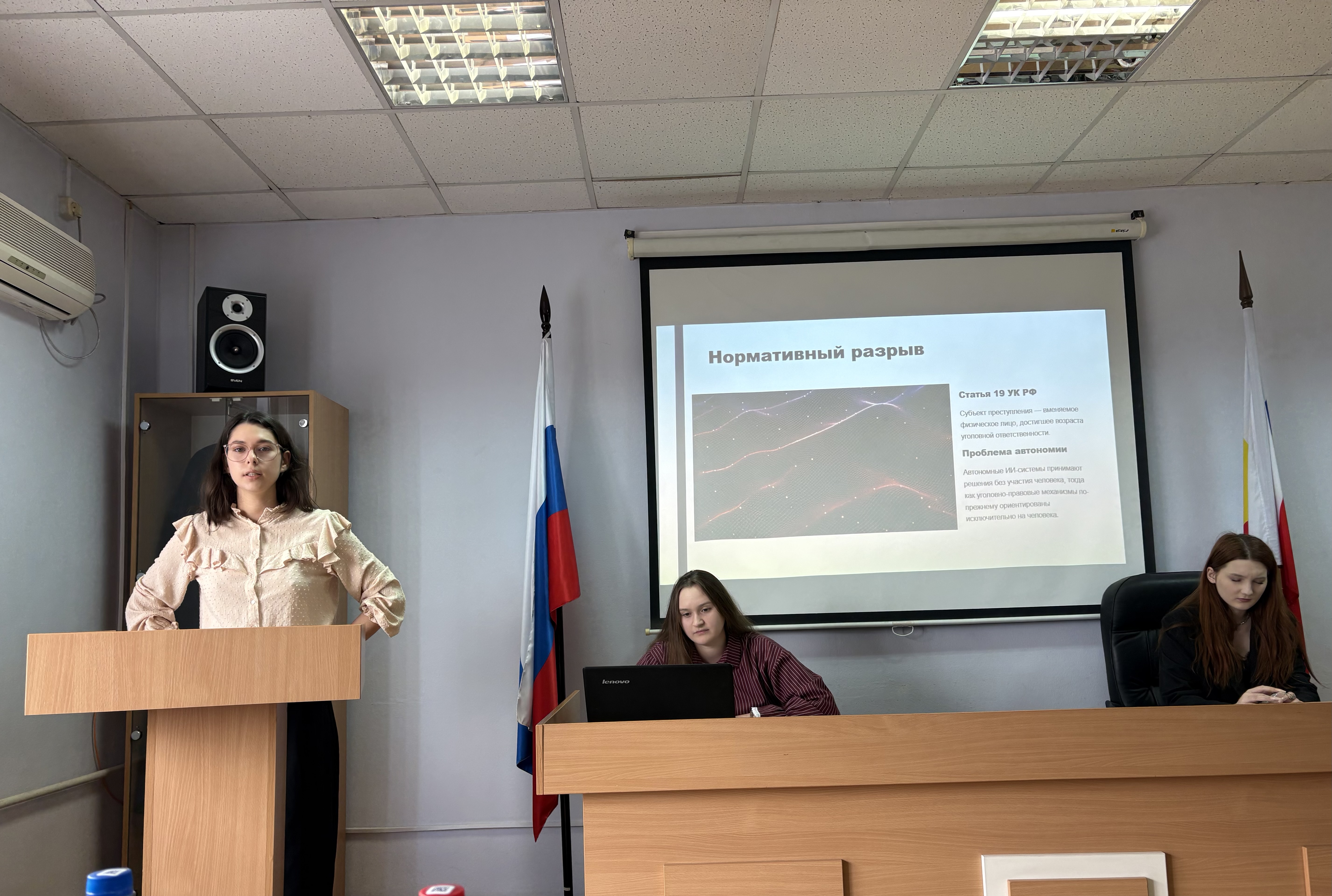 занял доклад на тему: Ограничения прав и свобод человека в условиях введения особого правового режима в РФ, подготовленный студенткой Сотниковой Валерией Владимировной, ФГБОУ ВО ДГТУ, научный руководитель: преподаватель кафедры уголовного права и публично-правовых дисциплин ФГБОУ ВО ДГТУ Негреева Т.Ю.