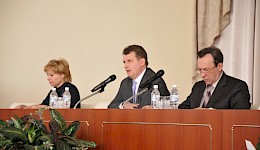 Перед делегатами выступил ректор РГУПС Верескун В.Д., который отметил, что новый коллективный договор уделяет большее внимание социальным вопросам коллектива университета. В свою очередь трудовой коллектив университета должен с большей ответственностью подойти к выполнению своих профессиональных обязанностей.